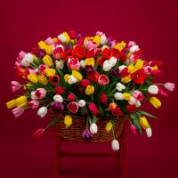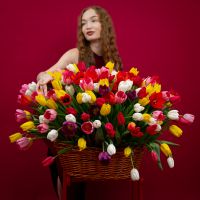 201 тюльпан в корзине — роскошная цветочная композиция, которая производит вау-эффект с первого взгляда. Пышные свежие бутоны собраны в аккуратную корзину, выглядят объёмно и дорого, а главное — такой подарок запоминается надолго. Мы собираем композицию перед выдачей, подбираем гармоничную палитру, надёжно фиксируем цветы в основе и оформляем корзину так, чтобы она сохранила форму при доставке.