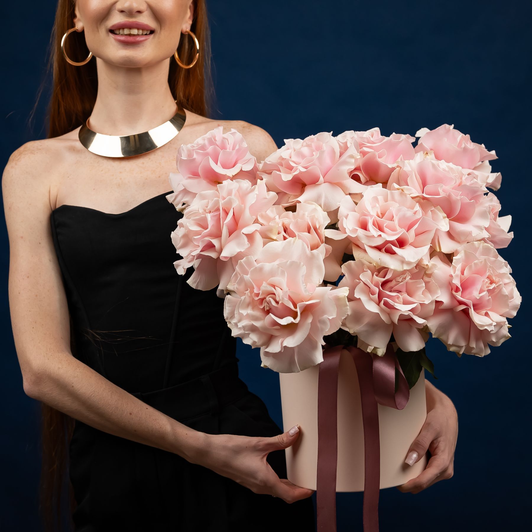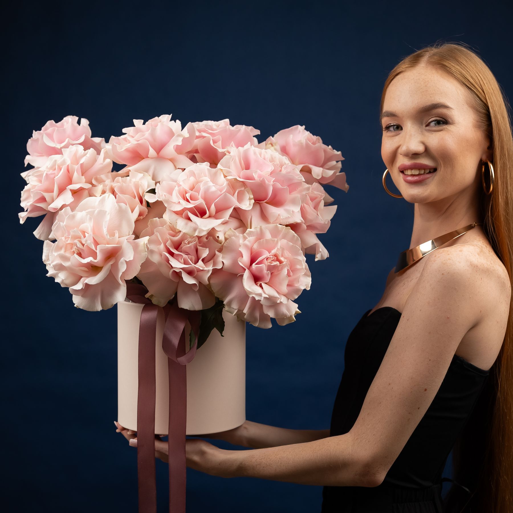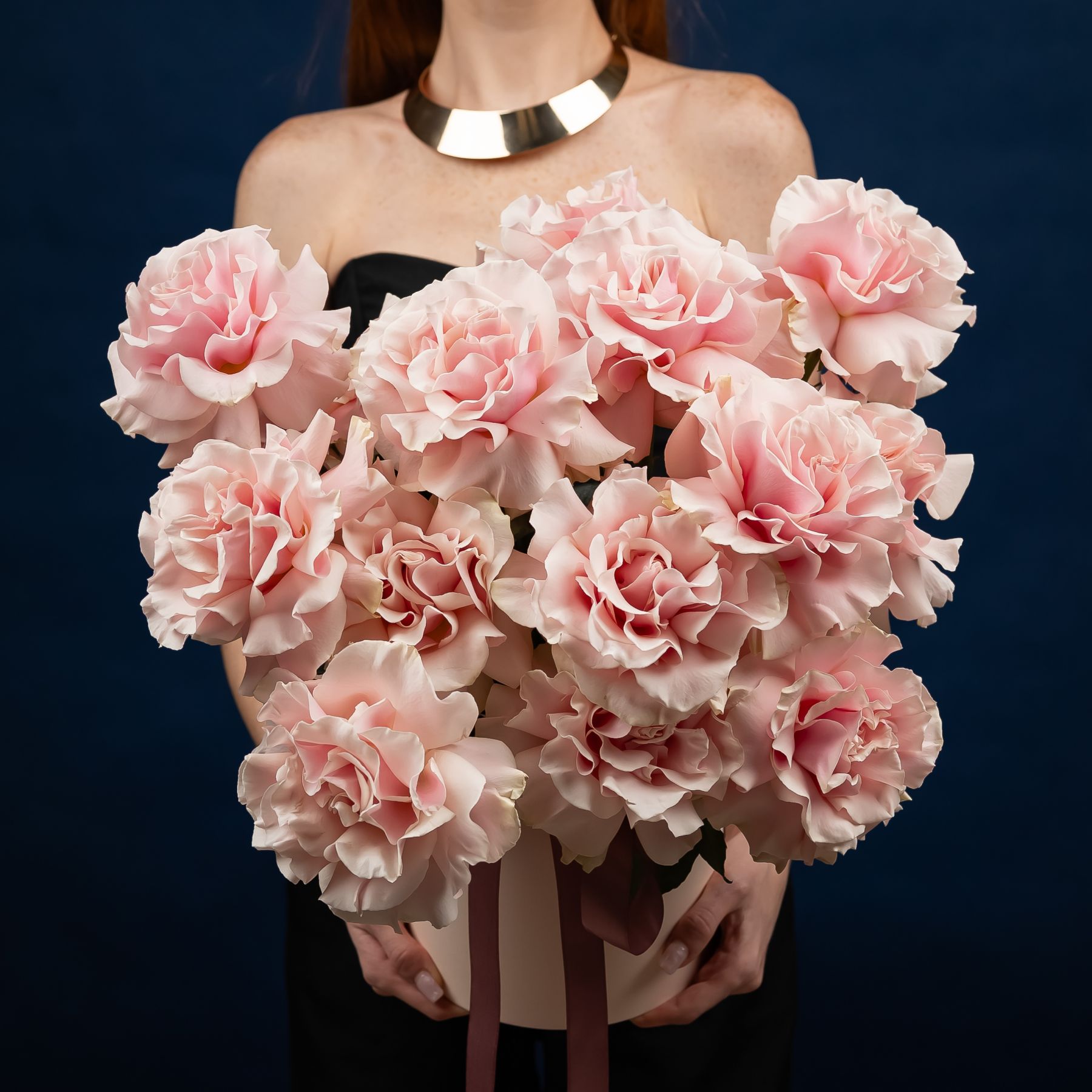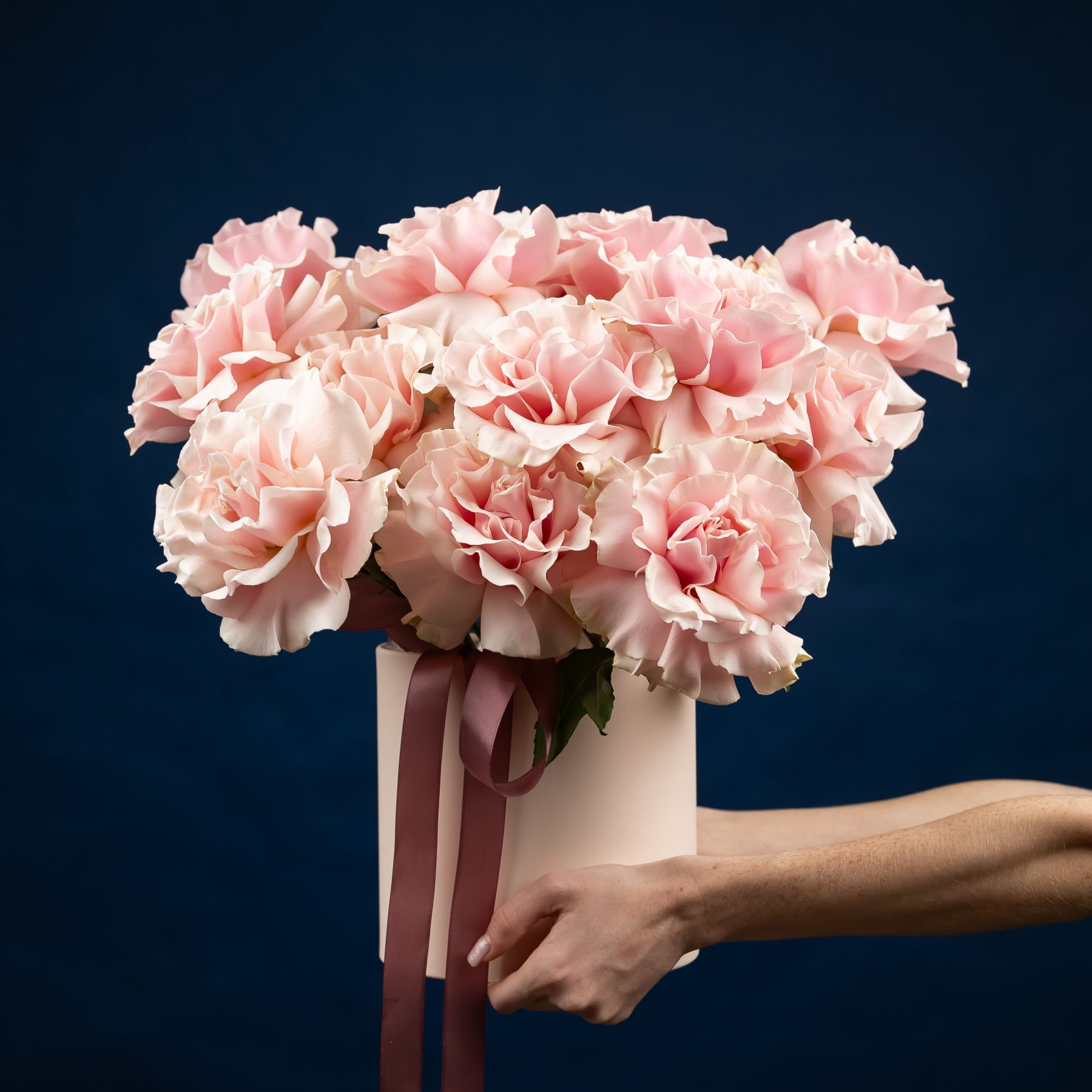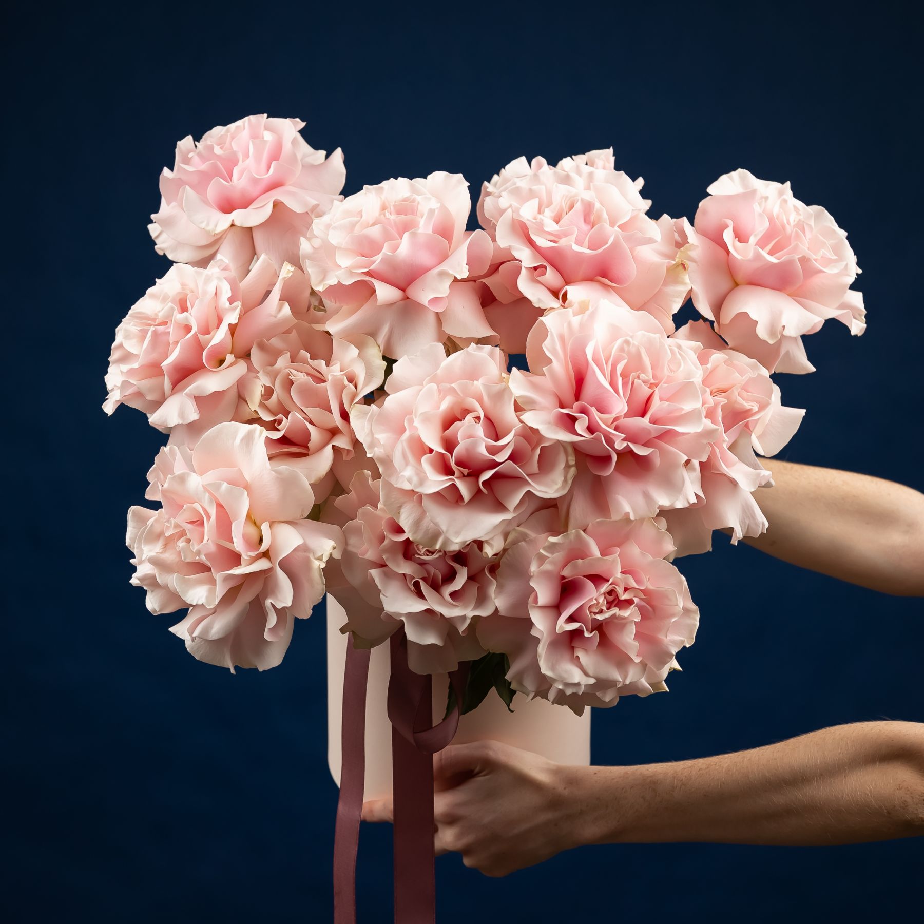 15 французских роз в шляпной коробке (сорт Пинк Мондиаль)