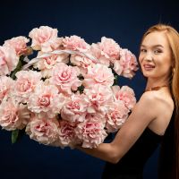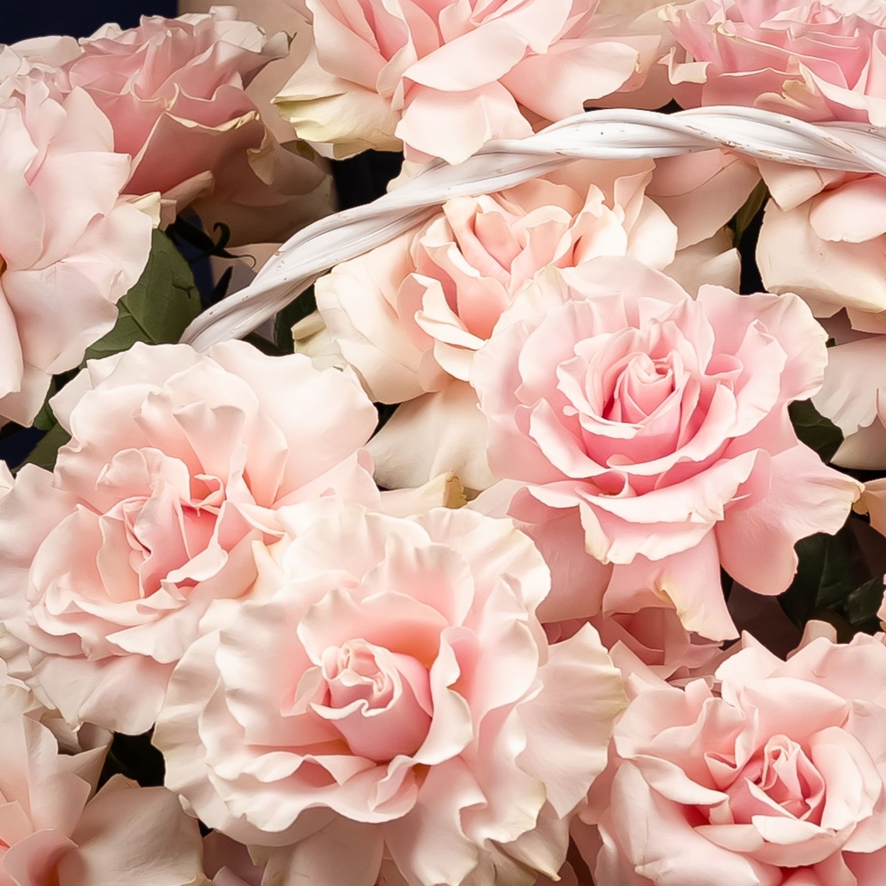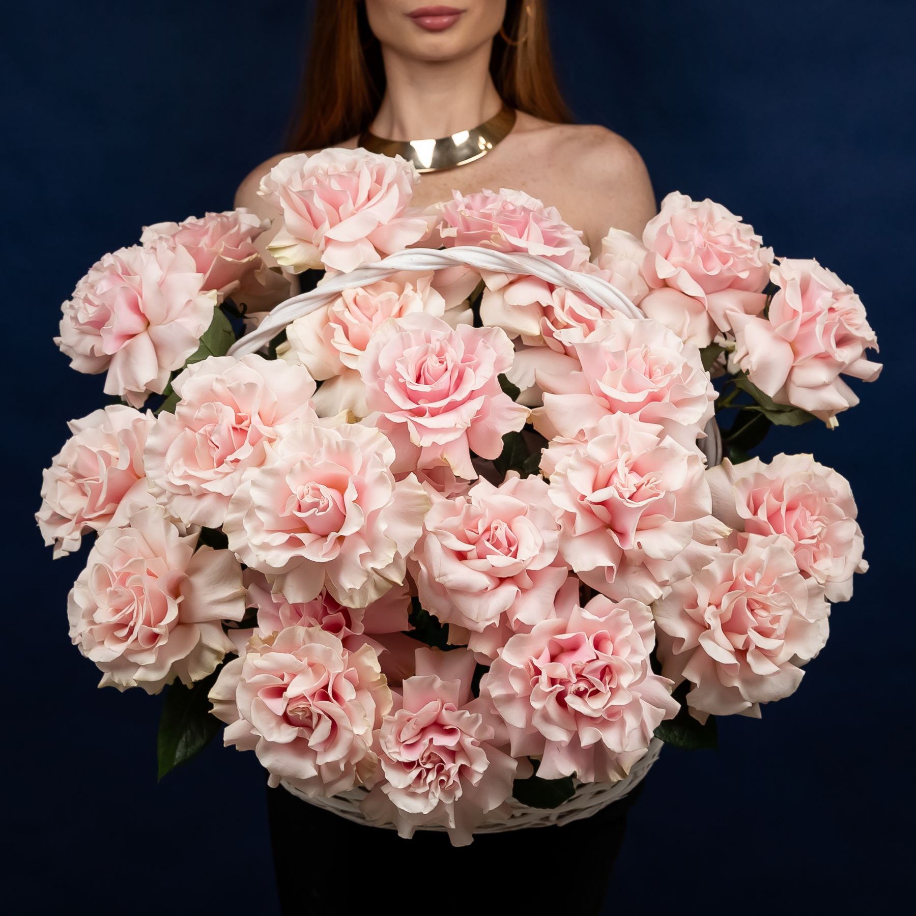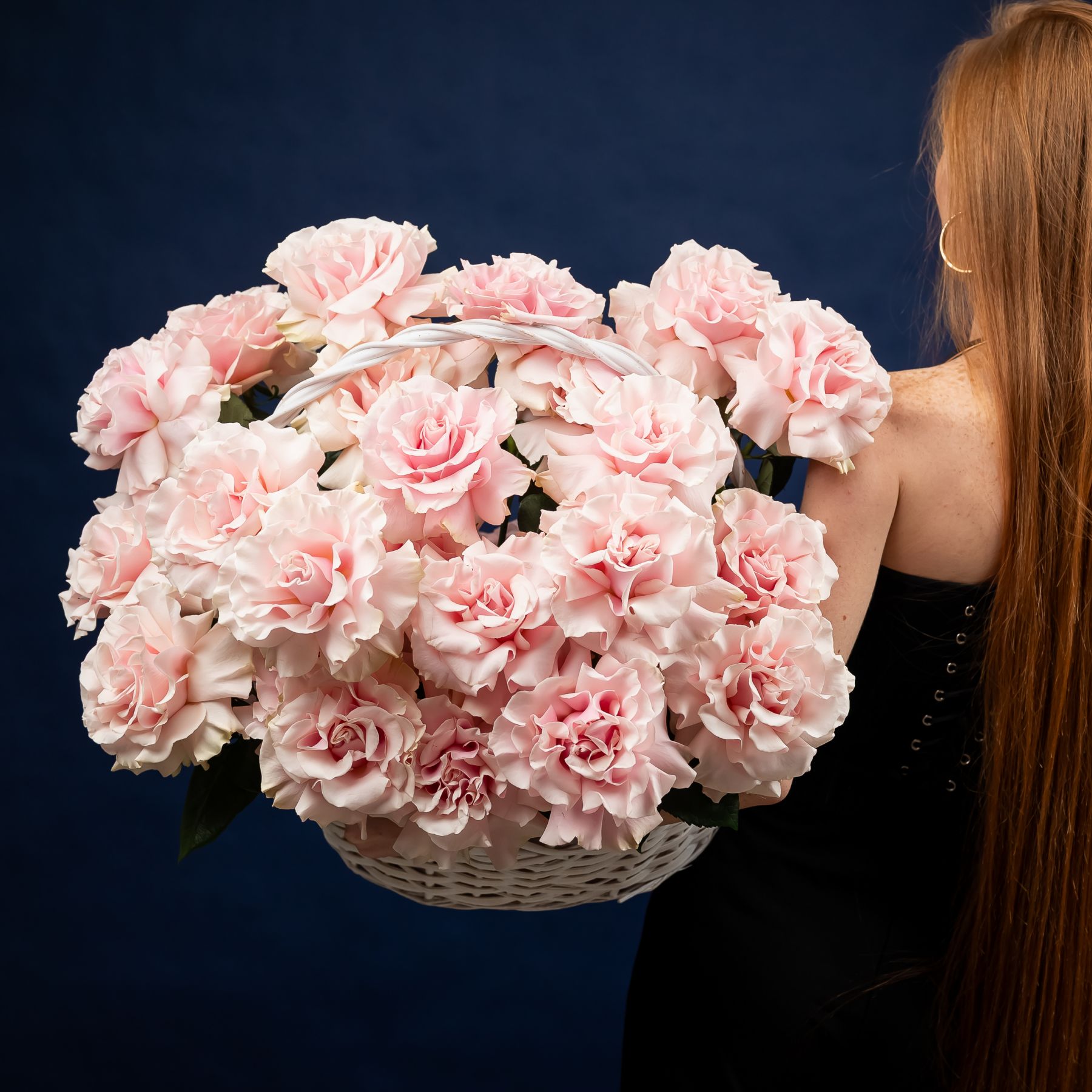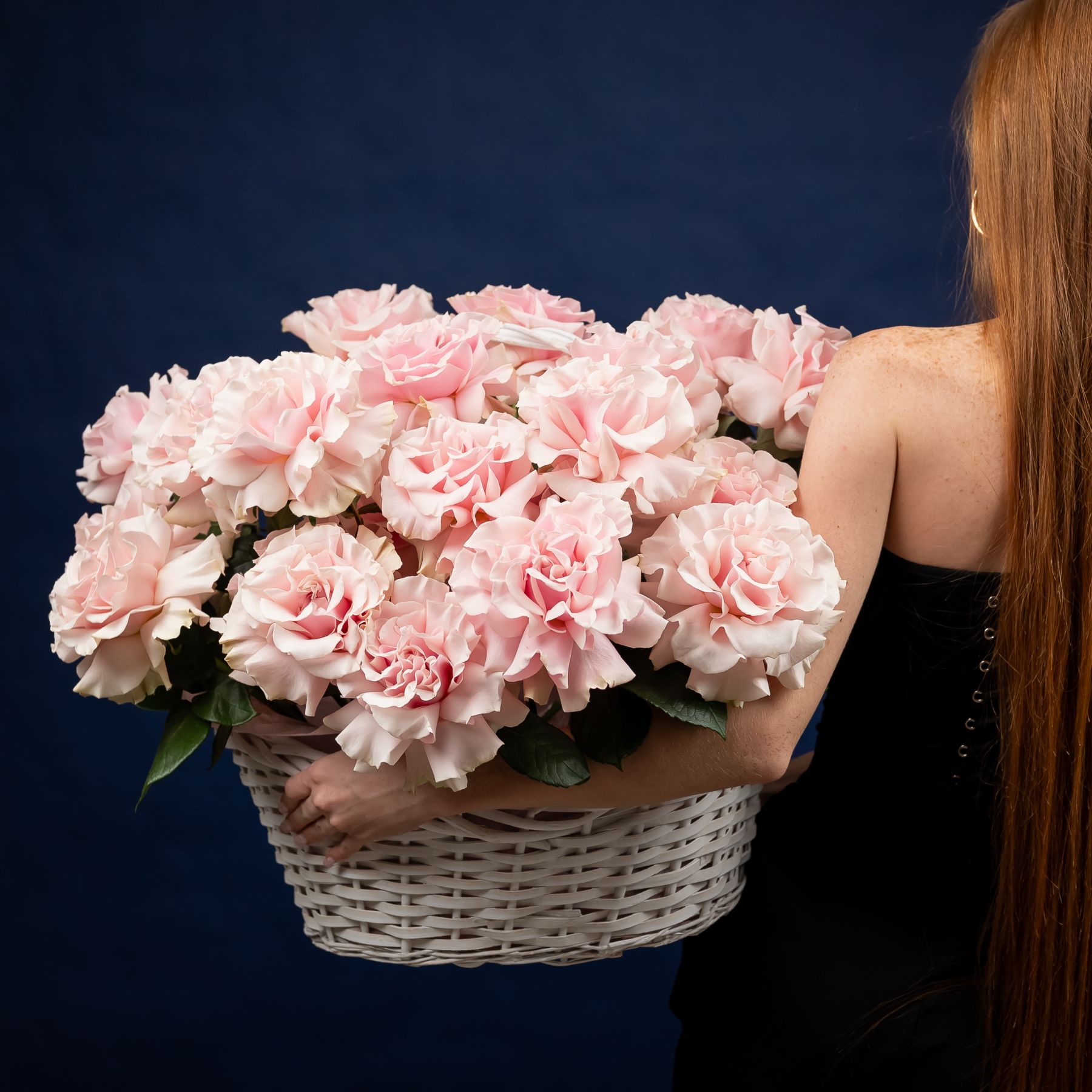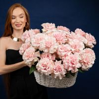 25 Французских роз (Пинк Мондиаль) в корзине размер L (40/37)