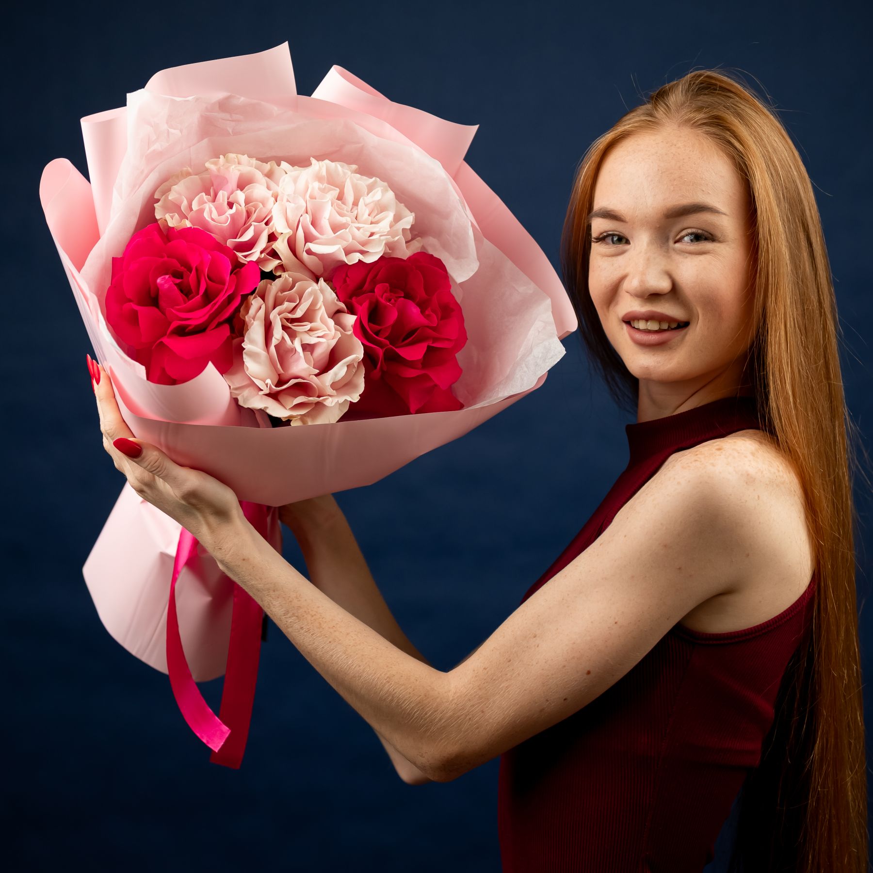Букет из французских роз — универсальный способ выразить внимание и заботу. Он подойдёт для любого повода: от романтического свидания до торжественного события. Стильный, свежий и вдохновляющий — этот букет станет главным акцентом праздника.