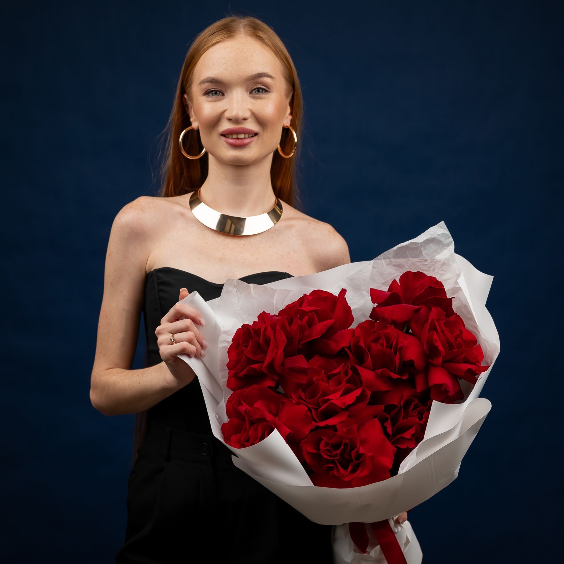 Букет из 9 красных французских роз — это воплощение элегантности и страсти. Каждая роза отличается глубоким, насыщенным оттенком красного