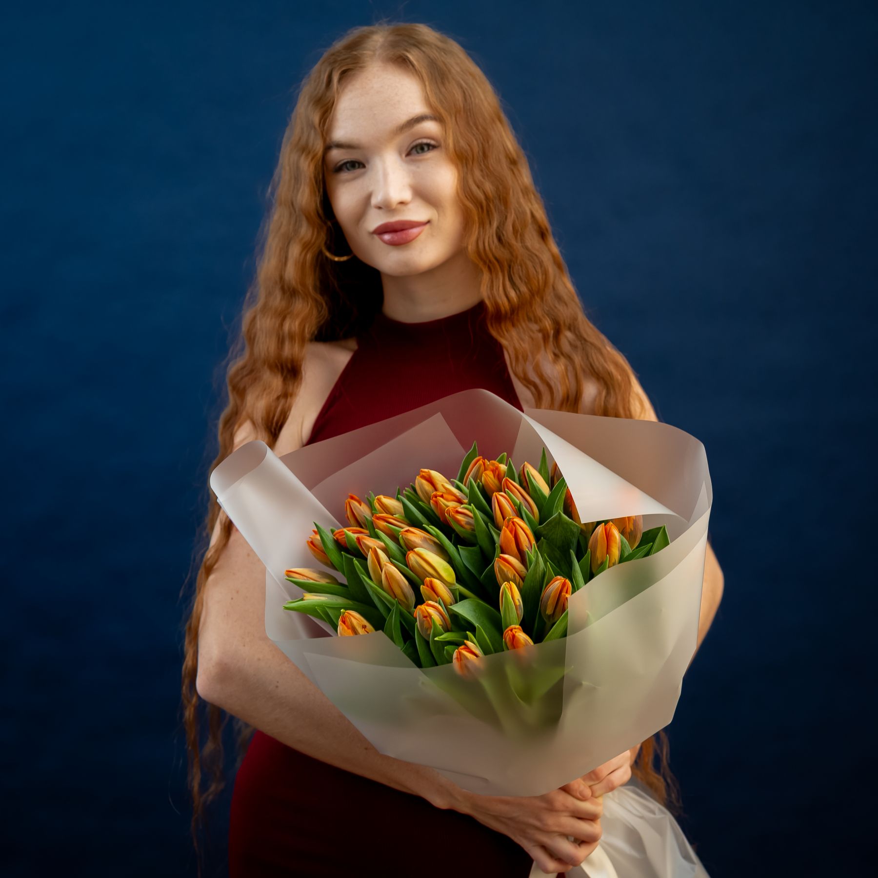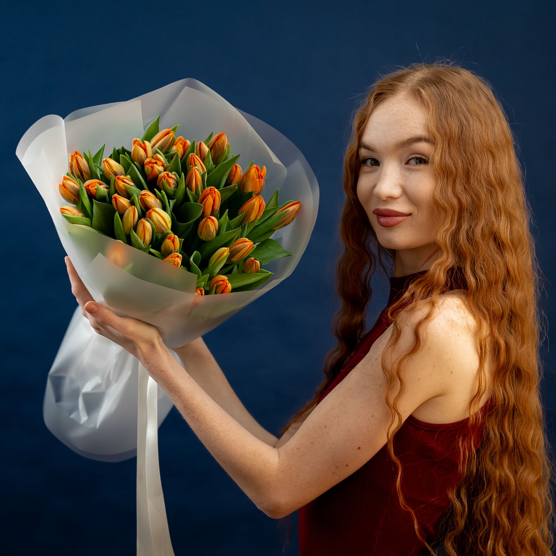Тюльпаны оранжевые 35шт